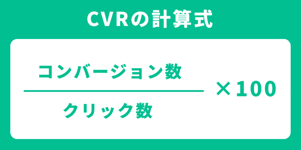 計算式は「CVR = コンバージョン数 ÷ クリック数 × 100(%)」で算出されます。